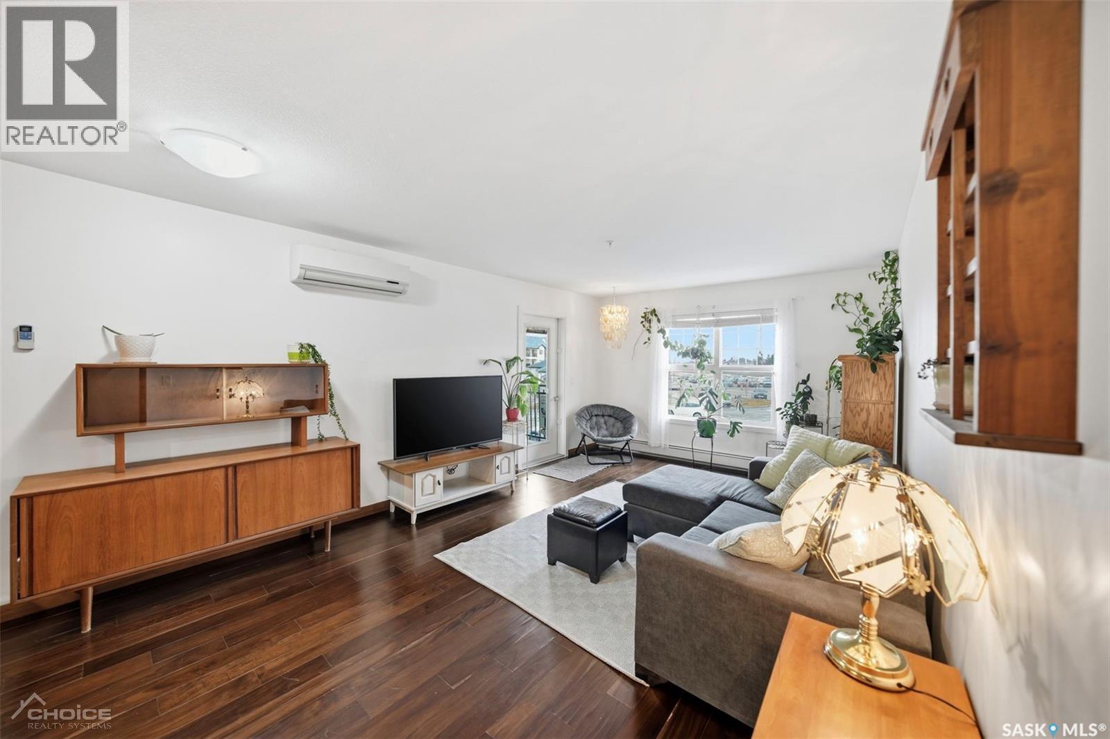 Welcome to this bright and well-maintained 2-bedroom, 1-bathroom condo in the desirable Rosewood community. Offering 936 sq ft of thoughtfully designed living space, this newer unit features a spacious open-concept layout filled with natural light, perfect for both relaxing and entertaining. The modern kitchen is equipped with quartz countertops and stainless steel appliances, providing both style and functionality. Enjoy the convenience of in-suite laundry, air conditioning, and baseboard heating for year-round comfort. Step outside onto your private balcony, ideal for summer BBQs, and take advantage of two electrified parking stalls. This pet-friendly building also offers access to an exceptional clubhouse complete with a gym, pool, and common room, adding incredible lifestyle value. Located close to parks, walking paths, shopping, and all amenities, this home is perfect for first-time buyers, downsizers, or investors. Don’t miss your opportunity to own in one of Saskatoon’s most sought-after neighborhoods. Schedule your viewing today! (29559713)