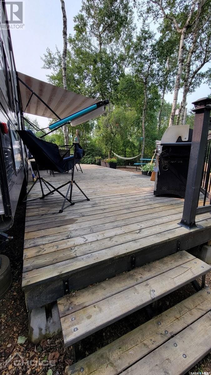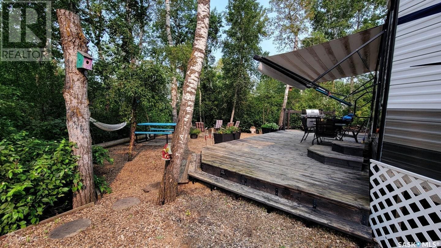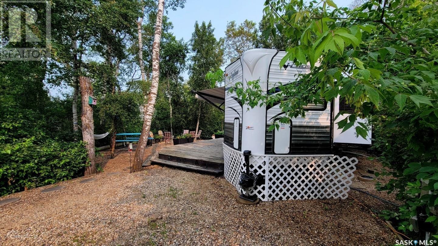 This fully serviced titled lot in the gated Deep Woods community offers the perfect blend of tranquility and adventure. Immerse yourself in nature on your private 3455 sq ft lot, complete with mature trees and a conservation area on one side. Enjoy boating and fishing on Isinger Lake. With a modern playground, walking trails, a man-made swim pond and beach, and being minutes away from both Wakaw and Wakaw Lake amenities there’s something for everyone. This turn-key property includes a 35.5 ft camper, deck, shed, and more. Don’t miss this opportunity to create lasting memories. This is a titled lot (not a 99 year lease!) in the RM of Hoodoo. Maintenance fees ($523 + $40 Reserve) and land taxes ($236) have been paid for 2024. Call today to schedule your private showing! Deep Woods Amenities: Each site is allocated a 10’ x 30’ boat\ATV storage space in a secure fenced storage compound Keycard entry security gates Boat launch (up to 40HP) A modern playground Man made swim pond and beach Nature walking trails throughout the area with seating benches Site Details: -35.5 ft Camper, 2 bedrooms, sleeps 7 -master bedroom at the front -bunkhouse at the back -dual electric/propane refrigerator -dual electric/propane water heater -air conditioning -forced air furnace -2 slide outs -rubber membrane roof -2 Parking spots -Storage shed -Large deck -BBQ -Some dishes/cooking utensils/flatware/pots -TV -Stereo/DVD/Blu-ray player new in 2021 -Complete plumbing to the 500 Gal septic holding tank -50 Amp service with addition 110v outlets -Potable Sask Water -2x Keycards for the security gate -Woodshed full of wood -Wheelbarrow -Picnic table -Wooden glider chairs -Brick firepit (not the one shown) *other contents negotiable* (28330835)