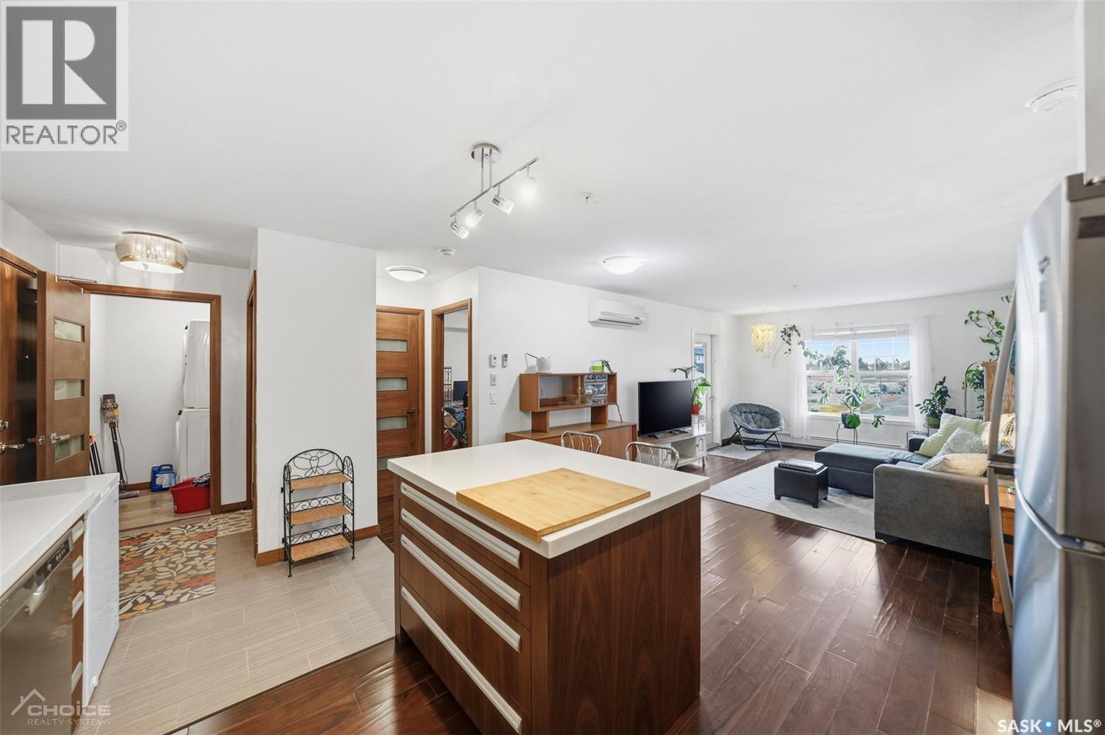Welcome to this bright and well-maintained 2-bedroom, 1-bathroom condo in the desirable Rosewood community. Offering 936 sq ft of thoughtfully designed living space, this newer unit features a spacious open-concept layout filled with natural light, perfect for both relaxing and entertaining. The modern kitchen is equipped with quartz countertops and stainless steel appliances, providing both style and functionality. Enjoy the convenience of in-suite laundry, air conditioning, and baseboard heating for year-round comfort. Step outside onto your private balcony, ideal for summer BBQs, and take advantage of two electrified parking stalls. This pet-friendly building also offers access to an exceptional clubhouse complete with a gym, pool, and common room, adding incredible lifestyle value. Located close to parks, walking paths, shopping, and all amenities, this home is perfect for first-time buyers, downsizers, or investors. Don’t miss your opportunity to own in one of Saskatoon’s most sought-after neighborhoods. Schedule your viewing today! (29559713)