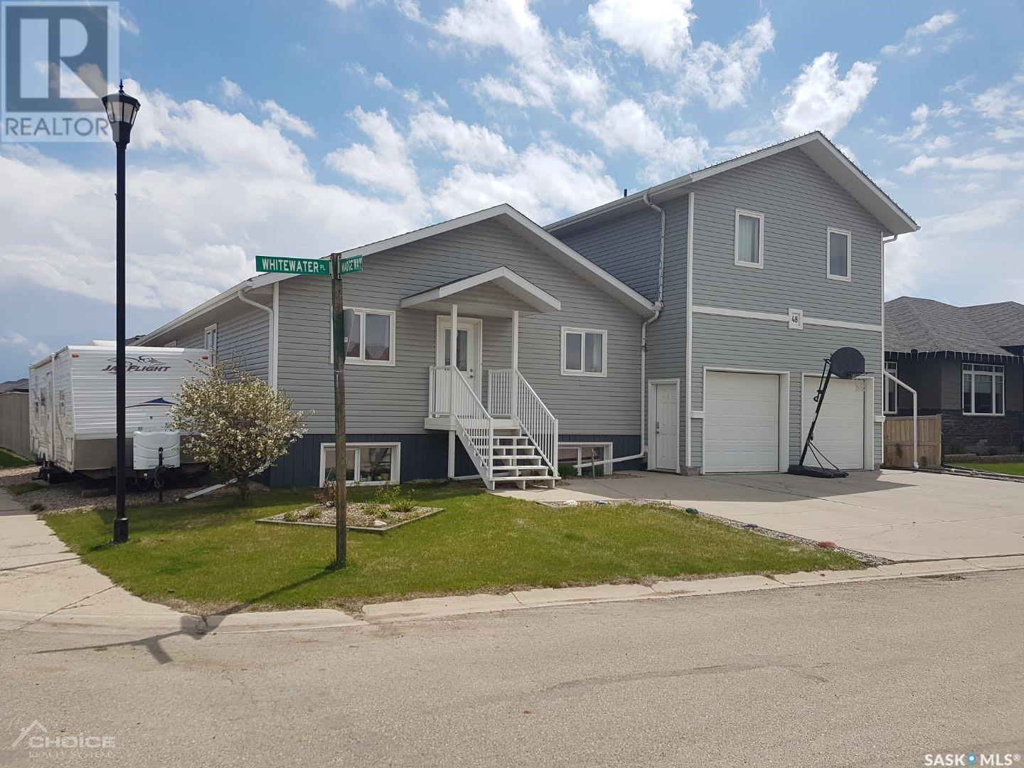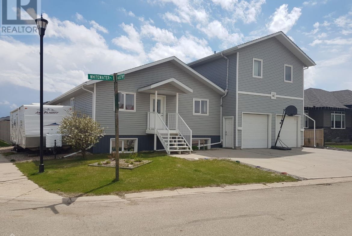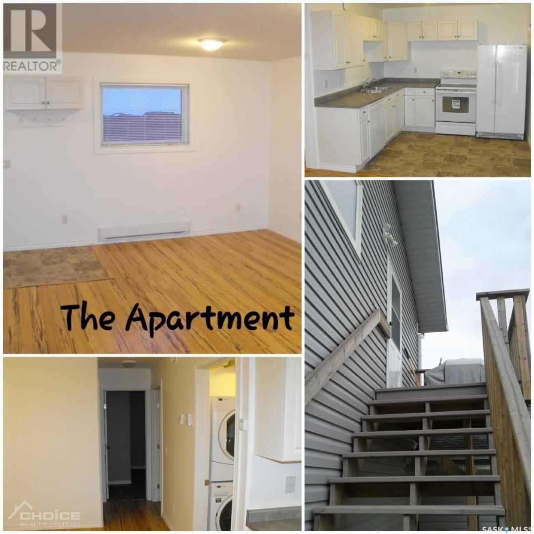 You will find this one of a kind income earning home in Yorkton’s newest neighbourhood… RIVERSIDE MEADOWS!! The main residence has over 2,600 sq. ft. of living space that will suit a growing family. The main floor has open kitchen/dining/living space with garden doors to the fenced back yard. The master bedroom with en-suite, 2 more bedrooms,4 piece bathroom and mud/laundry room complete the main floor. The basement has large windows and consists of another 2 spacious bedrooms, large rec room, exercise room, 3 storage spaces and 5 piece bathroom. The oversized attached garage is heated with access to the front and back yard. The backyard has a large east facing covered deck to get the morning sun and afternoon shade, garden space, 2 playhouses, large shed and many trees including three apple. The separate apartment/living space above the garage is completely separated from the house with private rear entrance. It has 2 bedrooms, 1 bathroom with tub, utility room and large living/dining/kitchen space. THE BONUS! The apartment earns $1250 per month to help pay down your mortgage faster! Tenant pays their own power(electric heat). There are 2 sets of appliances included. Move in to this one of a kind home and be able to pay half your mortgage without lifting a finger! (28499690)