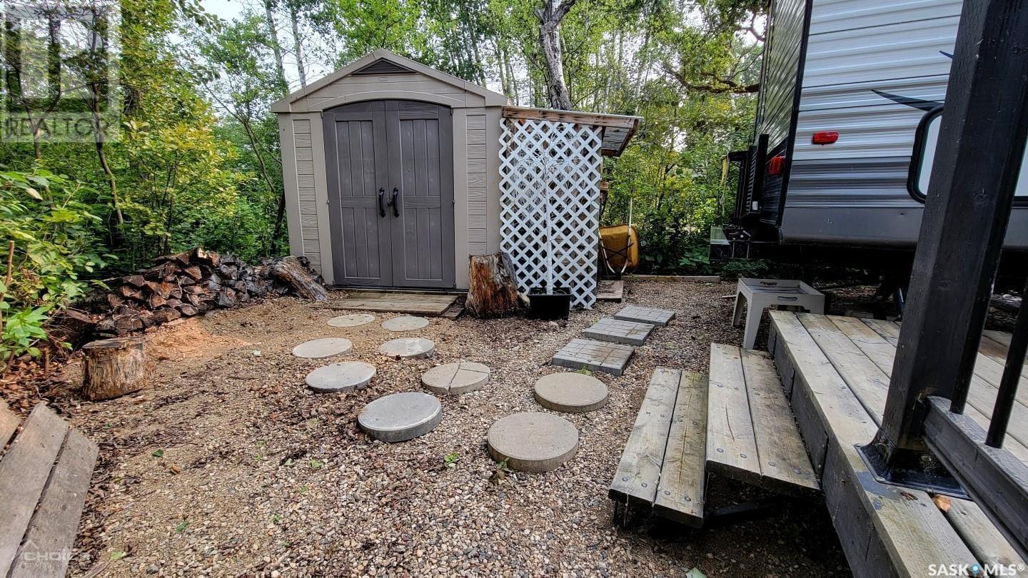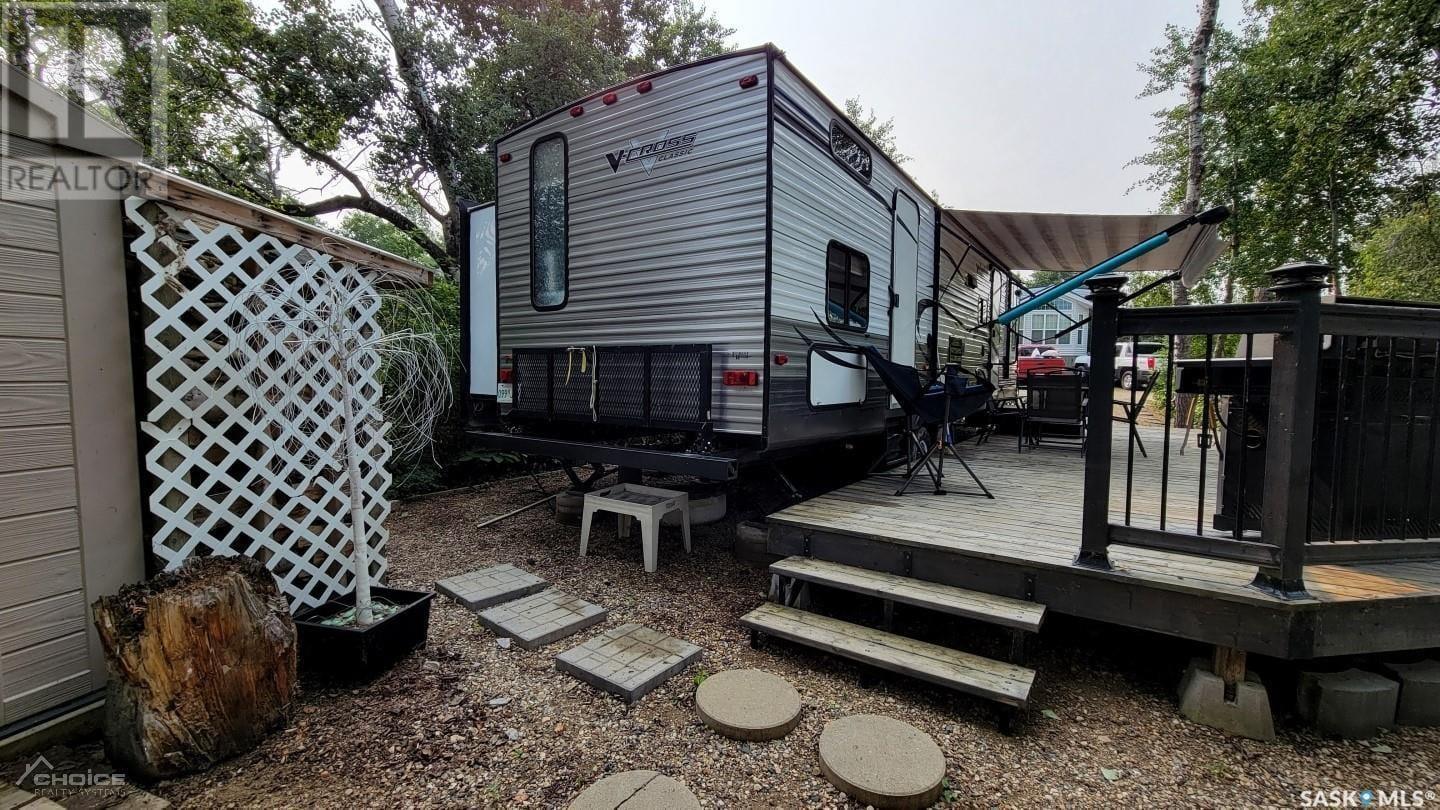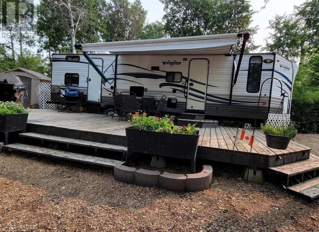 This fully serviced titled lot in the gated Deep Woods community offers the perfect blend of tranquility and adventure. Immerse yourself in nature on your private 3455 sq ft lot, complete with mature trees and a conservation area on one side. Enjoy boating and fishing on Isinger Lake. With a modern playground, walking trails, a man-made swim pond and beach, and being minutes away from both Wakaw and Wakaw Lake amenities there’s something for everyone. This turn-key property includes a 35.5 ft camper, deck, shed, and more. Don’t miss this opportunity to create lasting memories. This is a titled lot (not a 99 year lease!) in the RM of Hoodoo. Maintenance fees ($523 + $40 Reserve) and land taxes ($236) have been paid for 2024. Call today to schedule your private showing! Deep Woods Amenities: Each site is allocated a 10’ x 30’ boat\ATV storage space in a secure fenced storage compound Keycard entry security gates Boat launch (up to 40HP) A modern playground Man made swim pond and beach Nature walking trails throughout the area with seating benches Site Details: -35.5 ft Camper, 2 bedrooms, sleeps 7 -master bedroom at the front -bunkhouse at the back -dual electric/propane refrigerator -dual electric/propane water heater -air conditioning -forced air furnace -2 slide outs -rubber membrane roof -2 Parking spots -Storage shed -Large deck -BBQ -Some dishes/cooking utensils/flatware/pots -TV -Stereo/DVD/Blu-ray player new in 2021 -Complete plumbing to the 500 Gal septic holding tank -50 Amp service with addition 110v outlets -Potable Sask Water -2x Keycards for the security gate -Woodshed full of wood -Wheelbarrow -Picnic table -Wooden glider chairs -Brick firepit (not the one shown) *other contents negotiable* (28330835)